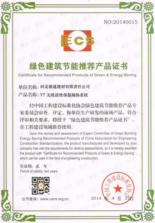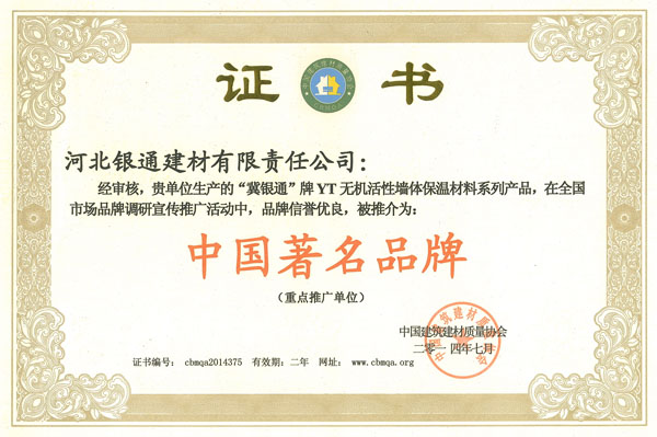 河北銀通建材有限責任公司,專注于環(huán)保節(jié)能新型保溫材料的研發(fā)和推廣,是北京質(zhì)量檢驗認證協(xié)會會員單位,公司產(chǎn)品YT無機活性保溫材料;無機輕集料保溫砂漿,無機保溫砂漿榮獲住建部:綠色建筑節(jié)能推薦產(chǎn)品證書;中國著名品牌;全國保障性住房建設(shè)用材優(yōu)秀供應(yīng)商: